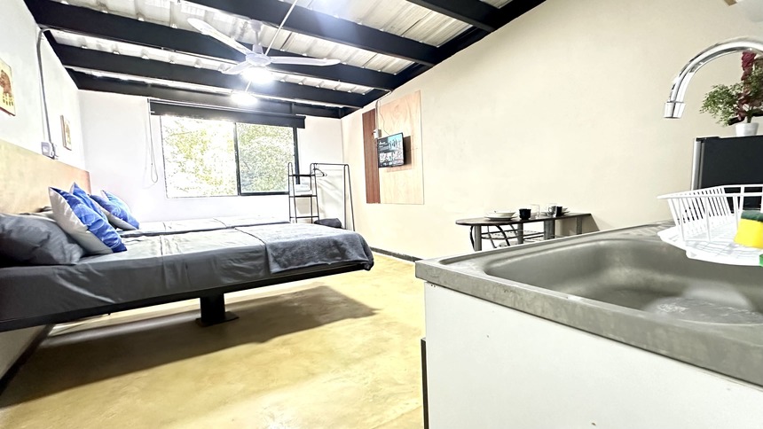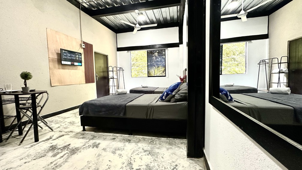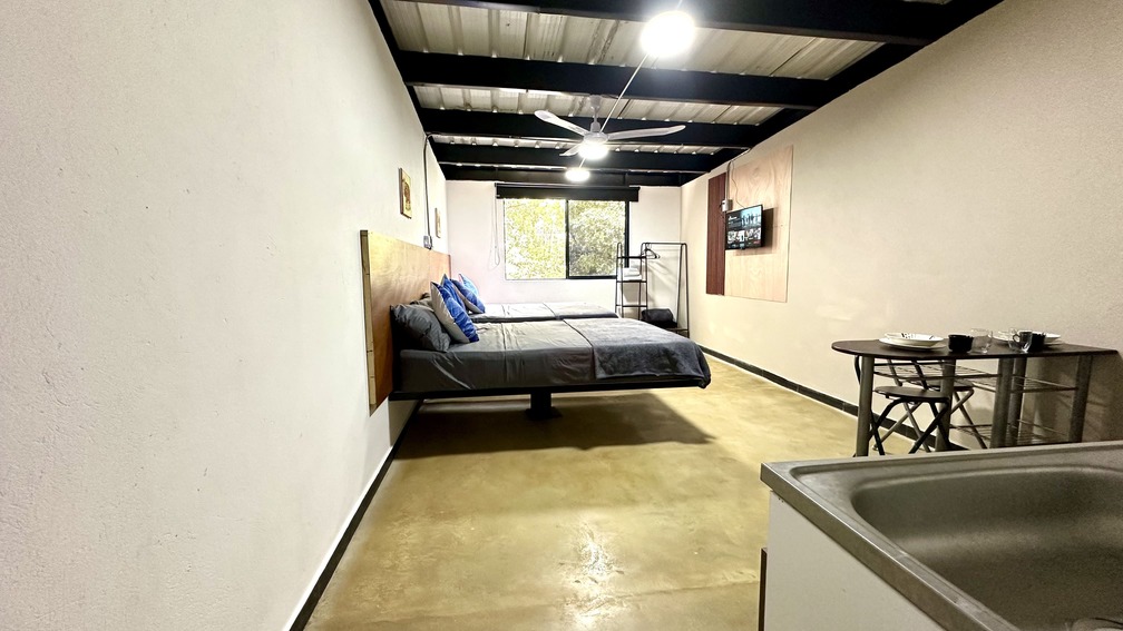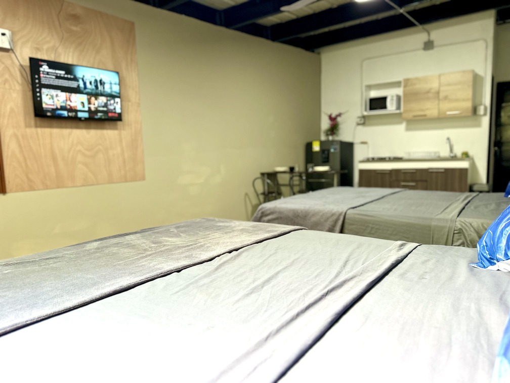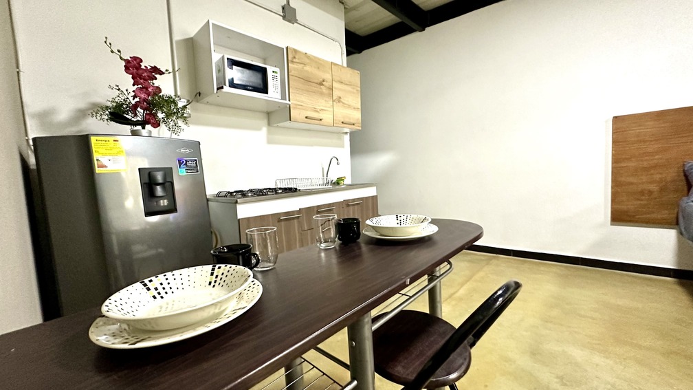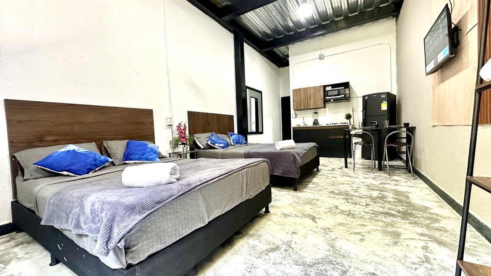 Cómodos, amplios y con cocina. Nuestros apartaestudios estan diseñados para que tu estadía sea genial, al contar con cocina dotada, tienes la oportunidad de preparar tu comida preferida, economizando gastos en tu viaje. cuenta con dos comodas camas dobles, ideal para acomodar hasta 4 personas y lo mejor es que tus mascotas son bienvenidas.